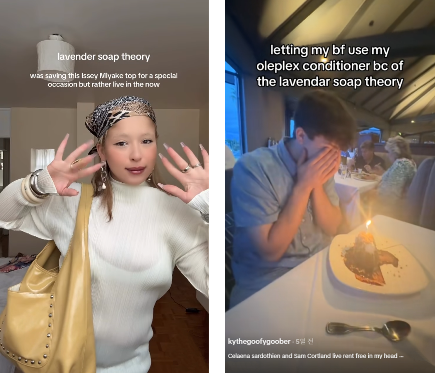 또 다른 크리에이터 @kythegoofygoober는 "라벤더 비누 이론 때문에 남자친구에게 제 올라플렉스 컨디셔너를 쓰게 해줬어요."고 적었습니다. 혼자 쓰려고 남겨두었던 아끼는 물건을 끝내 나누기로 한 선택이였어요. 여기에서도 주목받은 건 물건의 가격이 아니라, 사용을 미루던 기준이 바뀌었다는 점이었습니다. |